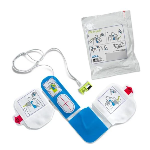ZOLL AED Plus CPR-D-Padz defibrillator pads: the single-piece electrode fitting that promotes easy pad placement to save time. This unique Z-shaped electrode features a built-in CPR system compatible with the ZOLL AED Real CPR Help technology.